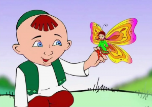 Стихотворение опубликовано в сборнике «Балалар күңеле» в 1910 году. «Бала белән күбәләк» («Ребёнок и бабочка»). Ребёнок. В мультфильме, созданном по этому стихотворению, маленький ребёнок беседует с красивой хрупкой бабочкой. Бабочка. В стихотворении она рассказывает ребёнку о своей короткой, но очень яркой жизни.