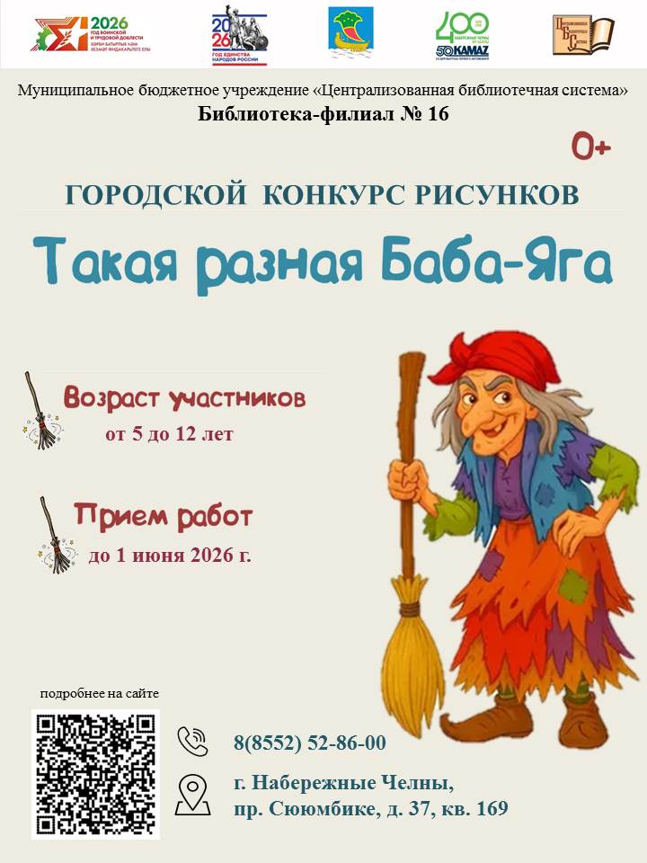 С 15 апреля по 1 июня 2026 года МБУ «Централизованная библиотечная система» приглашает детей от 5 до 12 лет принять участие в городском конкурсе рисунков «Такая разная Баба-Яга».