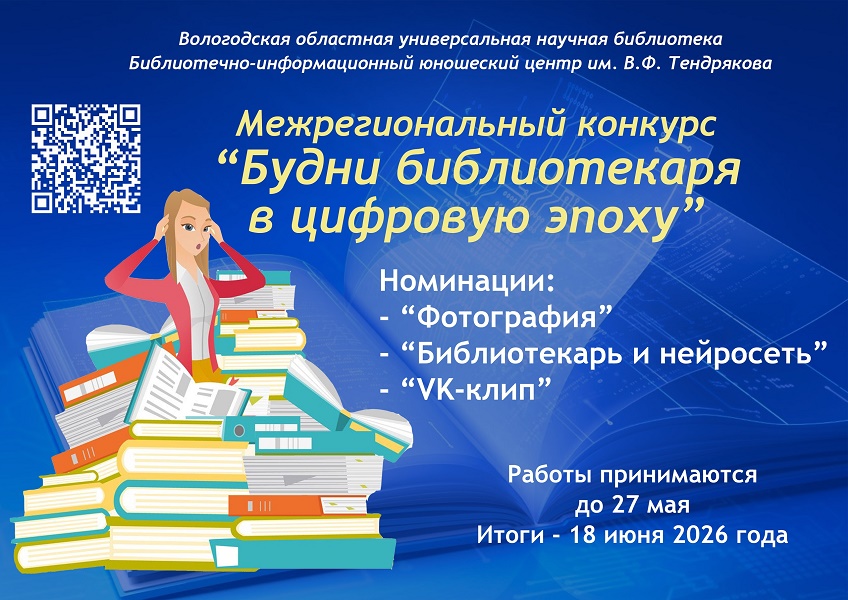 Юношеский центр им. В. Ф. Тендрякова Вологодской областной универсальной научной библиотеки приглашает коллег принять участие в Межрегиональном конкурсе «Будни библиотекаря в цифровую эпоху».