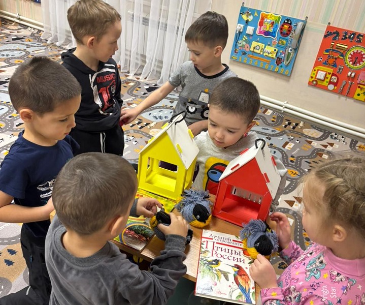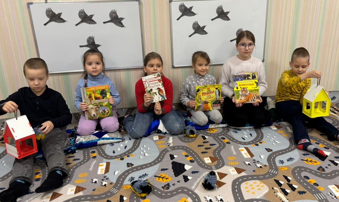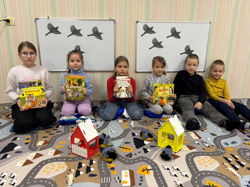 Дети поиграли в игры: «Зимующие и перелетные птицы», «Птичьи разговоры». Очень понравилась участникам подвижная игра на внимательность «Прилетели птицы», а также все вместе разгадывали кроссворд «Зимующие птицы».