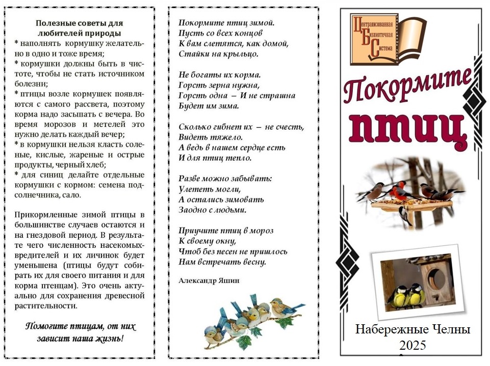 В завершение мероприятия библиотекарь каждому вручил информационный буклет «Покормите птиц зимой».