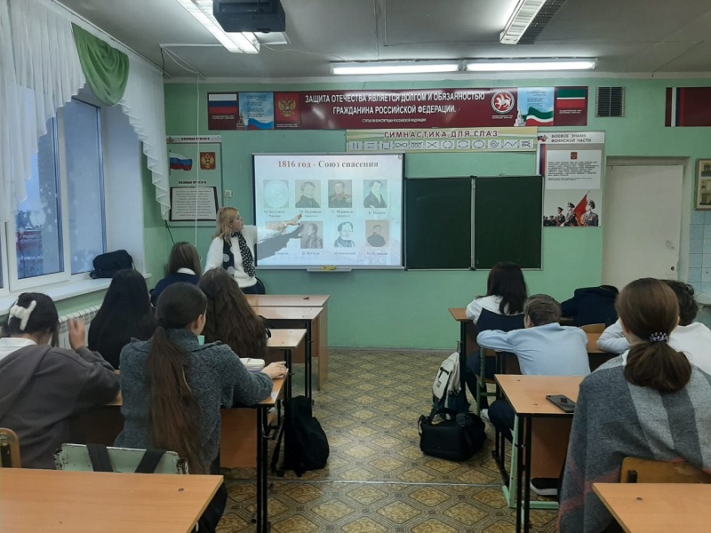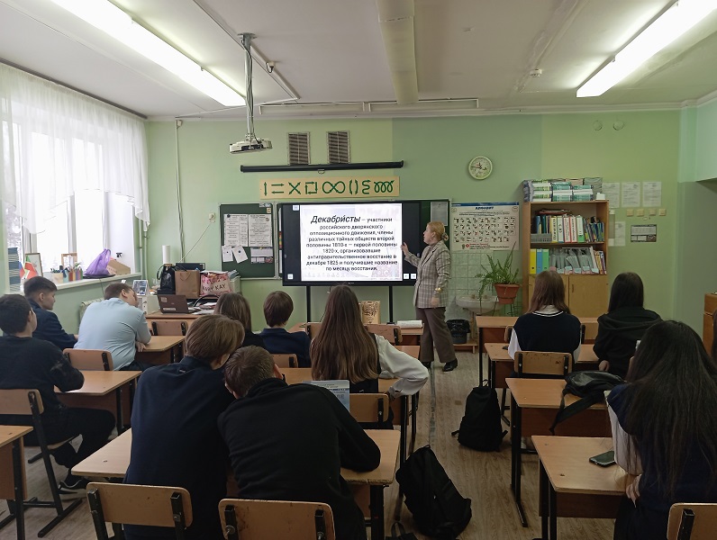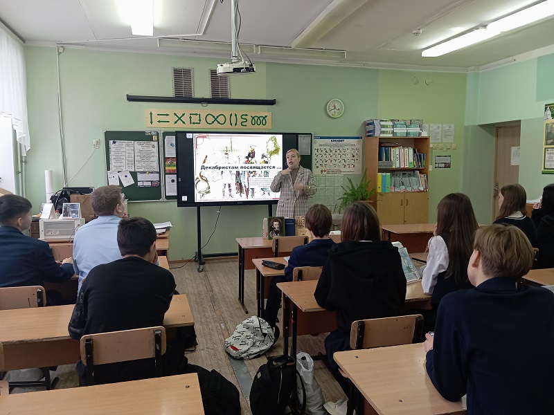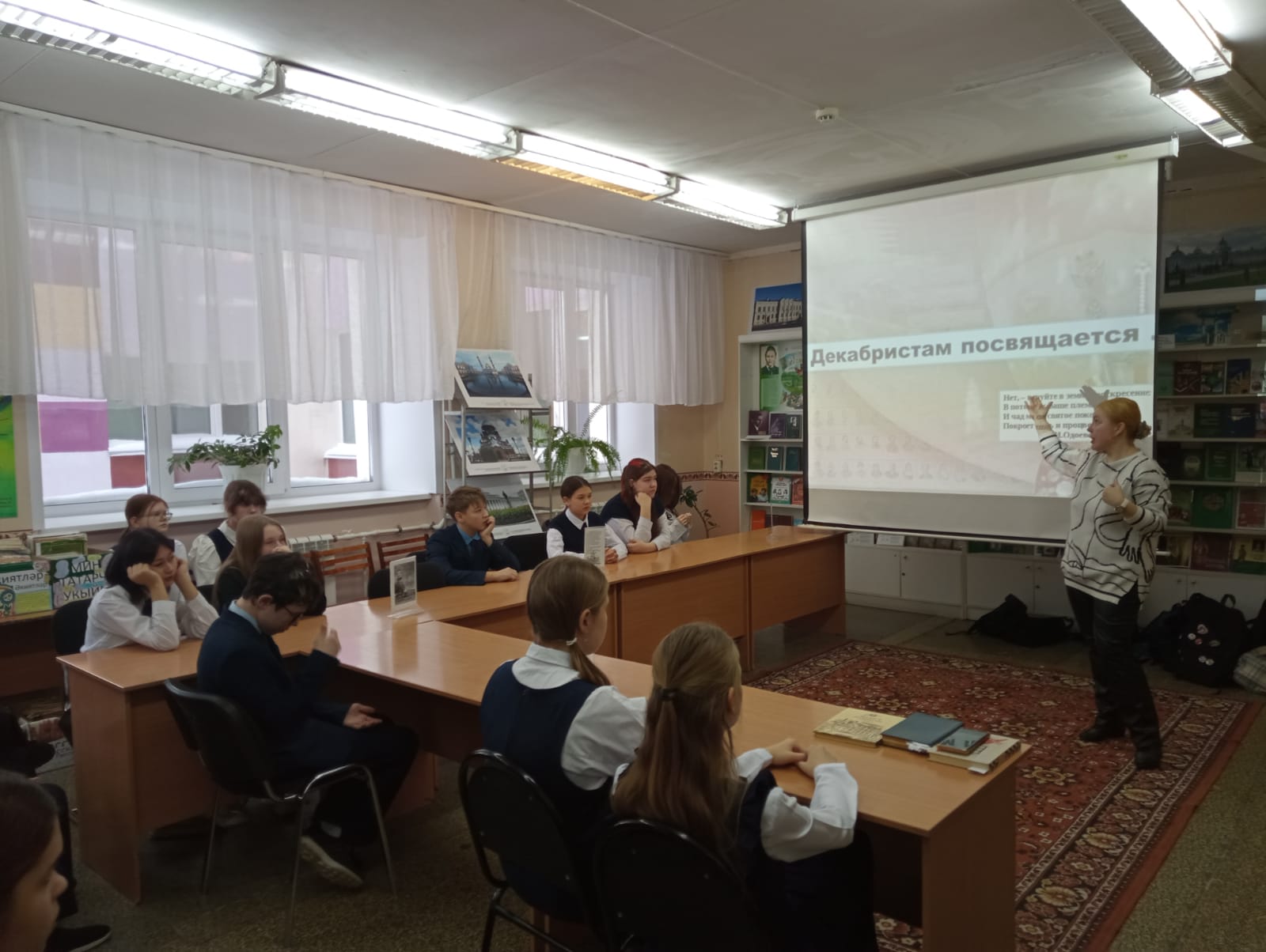 В ходе мероприятия были продемонстрированы фрагменты из художественных фильмов «Звезда пленительного счастья», «Союз спасения», которые помогли окунуться в атмосферу того далёкого времени. Присутствующие также прослушали отрывки из воспоминаний и писем участников восстания: М. Муравьева-Апостола, П. Пестеля, а еще стихотворения А.С. Пушкина «Во глубине сибирских руд», М.Л. Михайлова «Пятеро», А.В. Мишина «Жёны декабристов». Мероприятие позволило глубже понять и прочувствовать историю нашей страны, и вдохновило ребят на размышления о силе духа и преданности своим идеалам.
