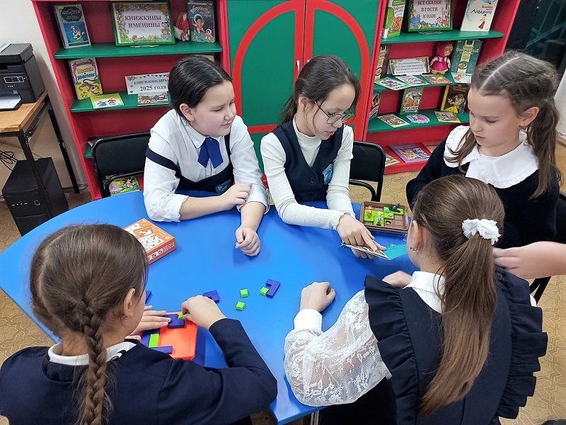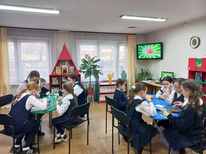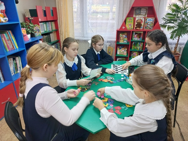 После школы ребята с удовольствием пришли в библиотеку, где сначала познакомились с историей возникновения настольных игр и их разнообразием, а затем сами попробовали в них сыграть. Можно было поиграть в такие игры как «Литературное лото», «Морской бой», «Составь слово», «Бродилка», а еще поучаствовать «Пазл-батле» – сборке пазлов на скорость и многом другом.