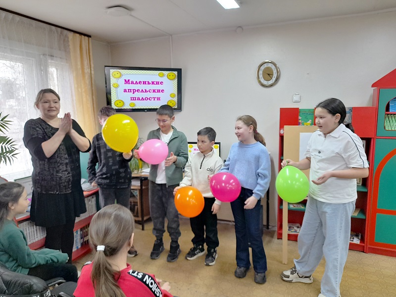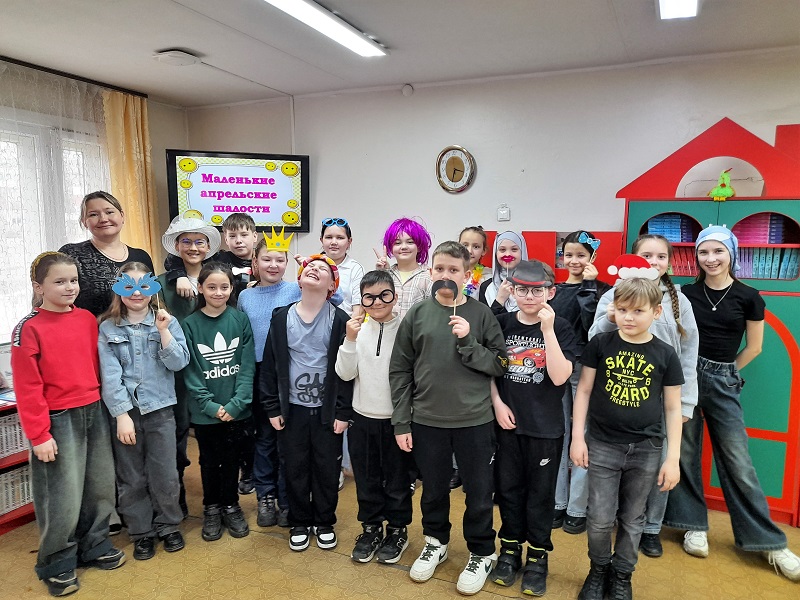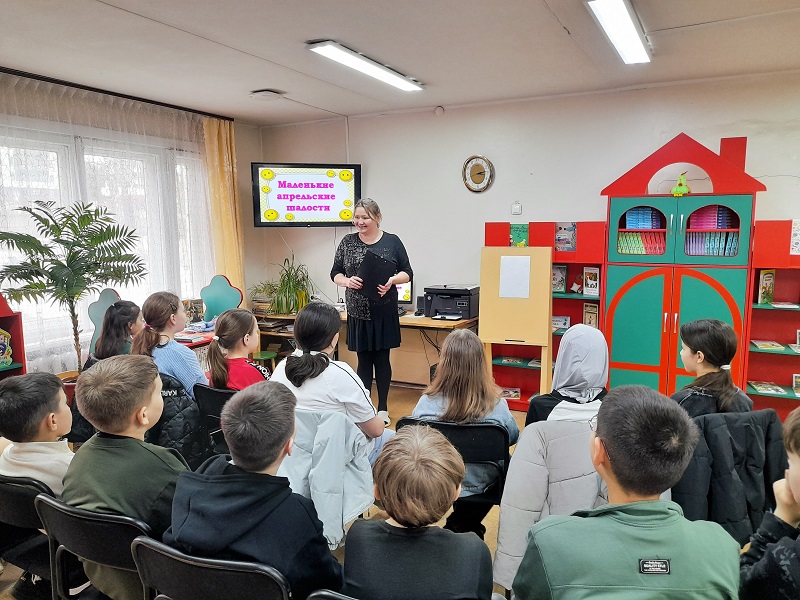 В начале мероприятия библиотекарь познакомила его участников с историей празднования Дня смеха и традициями первоапрельских розыгрышей. Дети узнали, что смех — это лучшее лекарство, а 1 минута смеха заменяет стакан сметаны и продлевает жизнь аж на целых 15 минут.
