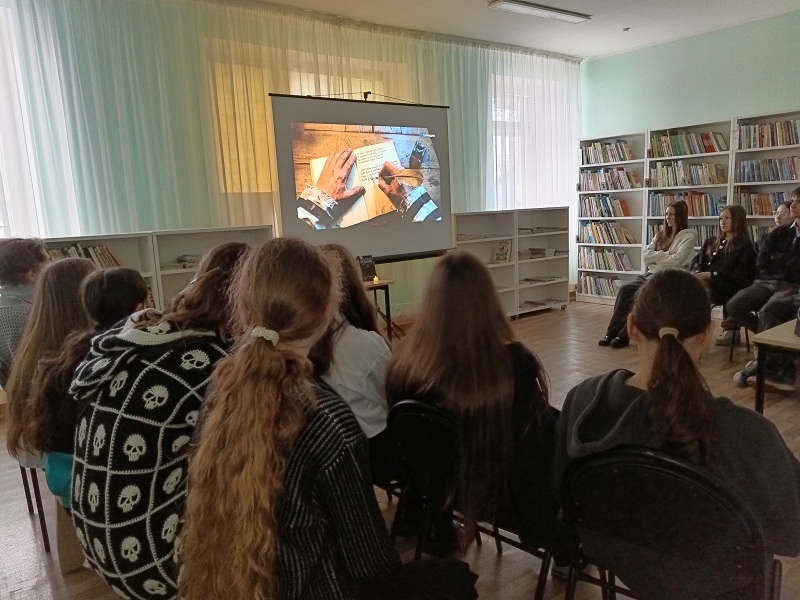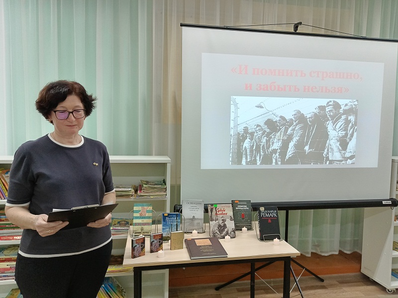 10 апреля в библиотеке-филиале №5 в рамках программы «Память поколений: страницы истории» для школьников прошел исторический обзор «И помнить страшно, и забыть нельзя».