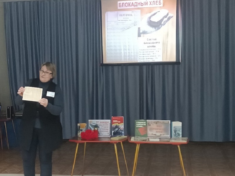 27 января – особая дата, День воинской славы России. День полного освобождения Ленинграда от фашистской блокады, которая продолжалась 900 долгих дней и ночей. Блокада Ленинграда – одна из самых трагических и печальных страниц истории нашей страны. Мужество и стойкость его жителей стали легендой. В этот день библиотека-филиал № 16 провела для старшеклассников час памяти «Летопись подвига». Библиотекарь интересно и подробно рассказала о блокадном Ленинграде, рассказ сопровождался видеоматериалами, которые никого не оставили равнодушными. С большим интересом присутствующие слушали о Дороге жизни, проходившей по Ладожскому озеру, о седьмой («Ленинградской») симфонии Д. Шостаковича, о продовольственных карточках и блокадном хлебе, о памятнике «Цветок жизни» в честь погибших детей блокады. Были прочитаны стихи Ольги Берггольц, которая была «голосом блокадного Ленинграда». В завершении ребята под стук метронома почтили минутой молчания память всех погибших в блокадном Ленинграде. Участники встречи пришли к выводу, что подвиг ленинградцев учит мужеству, стойкости и безграничной любви к Родине.