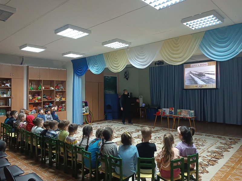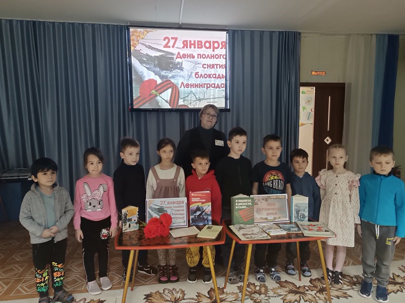 Также ко Дню полного снятия блокады Ленинграда для дошкольников прошел урок мужества «900 героических дней». Ребята с интересом просмотрели видеоролики, наглядно показывающие тяжелую жизнь ленинградцев в те нелегкие для всей страны времена, послушали рассказ о ленинградских детях, которые во всем старались помогать взрослым: ухаживать за ранеными в госпиталях, расчищать улицы города, работать на заводах и фабриках. Особенными чувствами дети прониклись к судьбе маленькой девочки Тани Савичевой, которой пришлось пережить ужасы блокады. Её дневник стал одним из символов Великой Отечественной войны. Затаив дыхание, присутствующие прослушали рассказ «Блокадный хлеб» и записи дневника Тани Савичевой. В конце встречи библиотекарь вручила символические ломтики хлеба весом 125 грамм в память о погибших в блокадном Ленинграде и о тех, кто пережил блокаду.