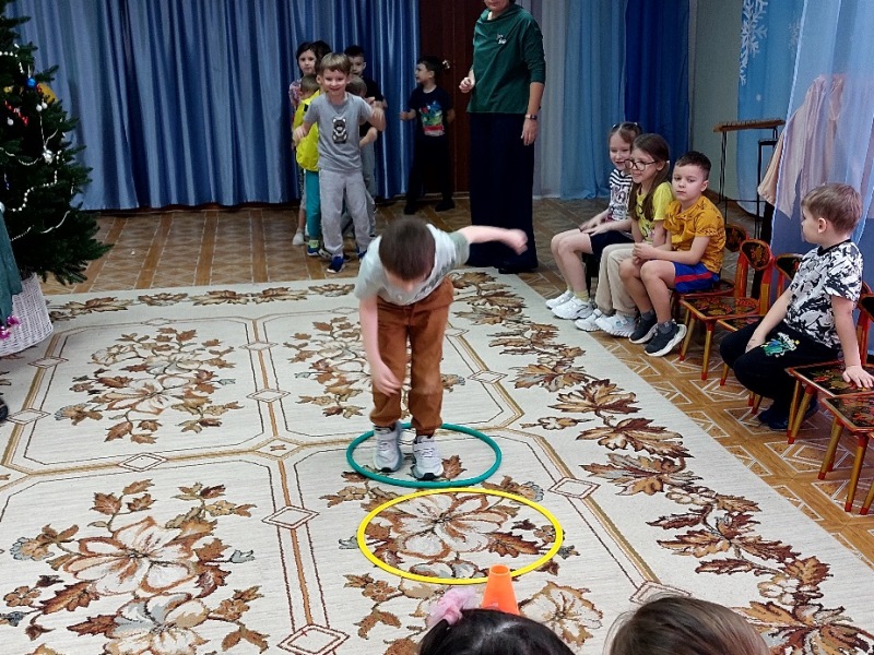 Ребята разделились на команды, и соревнования начались! Ребята прошли эстафеты-конкурсы «Мачеха и Золушка», «Собери подарки», «Снежки», «Валенки», «Идем по льдинкам», а также выполняли задания «Найди пару рукавичке», «Найди тени снежинок»  и др.  Дошкольники с большим удовольствием и азартом участвовали во всех конкурсах, а под зажигательные новогодние песни танцевали. Ребята получили заряд праздничного настроения и получили много положительных эмоций.
