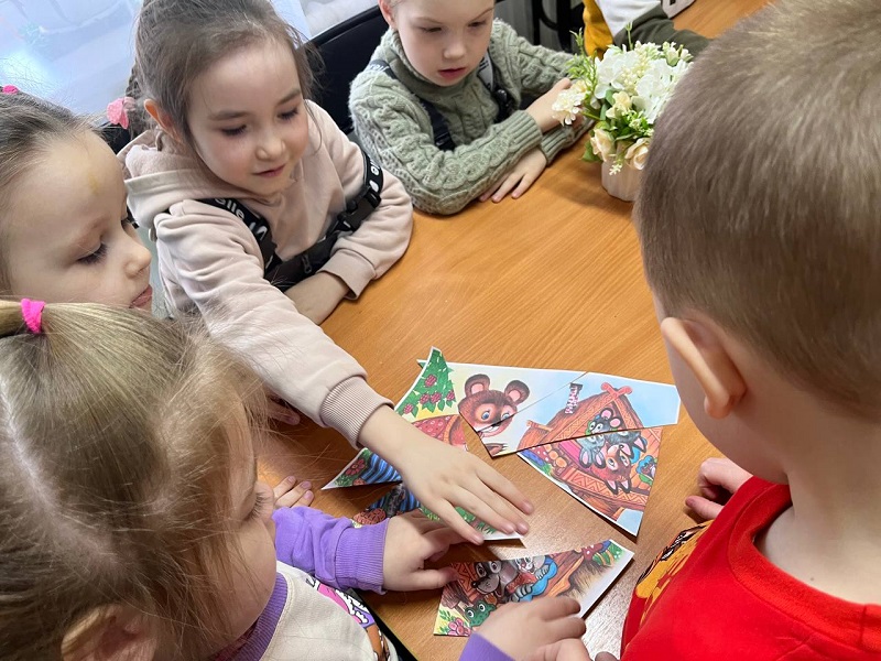 В библиотеке малыши отгадывали загадки о сказочных персонажах, отвечали на вопросы викторины, рассматривали красивые иллюстрации, собирали пазлы.