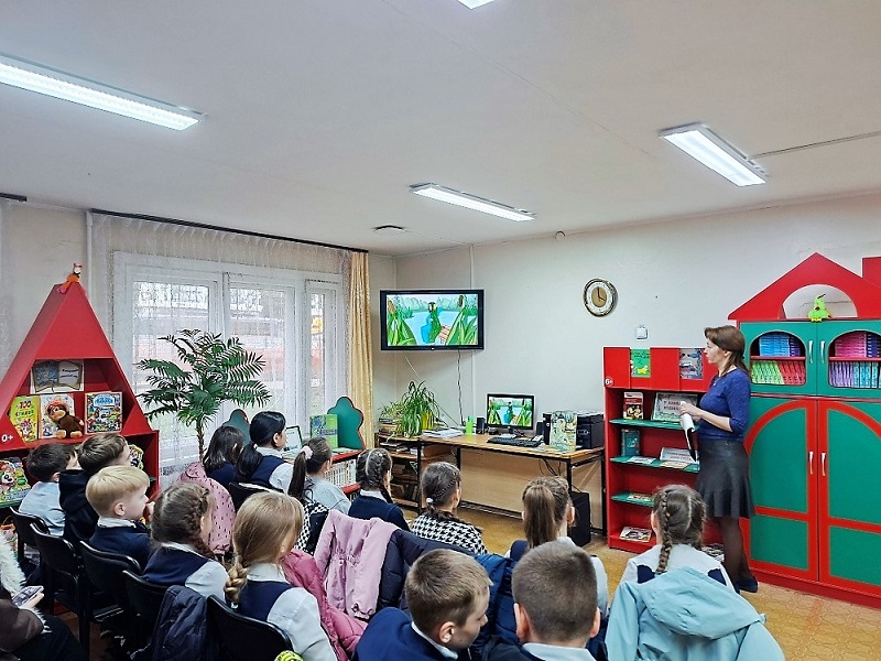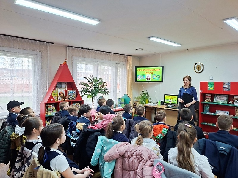 Затем вместе с библиотекарем дети совершили путешествие в сказочный мир Тукая. Они познакомились со сказками, которые занимают особое место в творчестве поэта, такими как «Шурале», «Водяная», «Коза и баран», а также стихотворениями «Мышь, попавшая в молоко» и «Ребёнок и мотылёк», посмотрев мультфильмы студии «Татар-Мульфильм». После просмотра анимации ребята определили их основную мысль и сделали выводы, чему они учат.