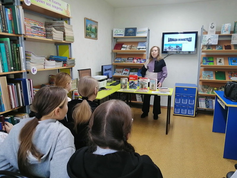 Особенными чувствами юные слушатели прониклись к судьбе маленькой девочки Тани Савичевой, дневник которой стал одним из символов Великой Отечественной войны. Ребята словно переместились в далёкое прошлое, ощутив на себе все тяготы тех страшных событий. Вниманию участников была представлена книжная выставка «900 дней блокады», наглядно показывающая тяжелую жизнь ленинградцев в те нелегкие для всей страны времена. Подвиг защитников Ленинграда, жителей блокадного города оставил яркий след в художественной и мемуарной литературе.