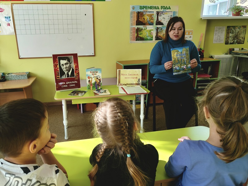 Литературный час «Муса Джалиль – поэт-герой», посвященный 120-летию Мусы Джалиля, познакомил детей с жизнью и творчеством известного татарского поэта. Сотрудник библиотеки-филиала №17 рассказала детям о том, как ранние впечатления сформировали его характер и вдохновили на создание прекрасных стихов.