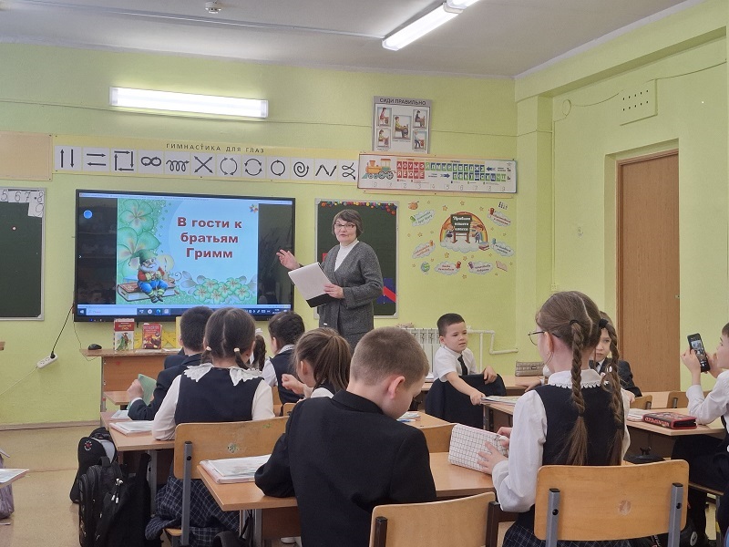 С помощью презентации участники отправились в увлекательное путешествие по жизни и творчеству любимых сказочников, узнали, как рождались волшебные сказки братьев Гримм, в честь каких любимых персонажей сказки «Бременские музыканты» уставлены памятники. С помощью литературных игр: «Волшебный сундучок», «Угадай сказку по картинке», «Допиши имя героя» вспомнили героев самых известных произведений. В конце мероприятия школьники посмотрели отрывок из мультфильма «Храбрый портняжка», полистали сказки братьев Гримм на книжной выставке.