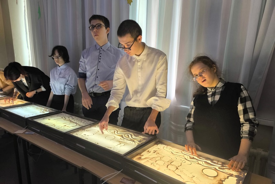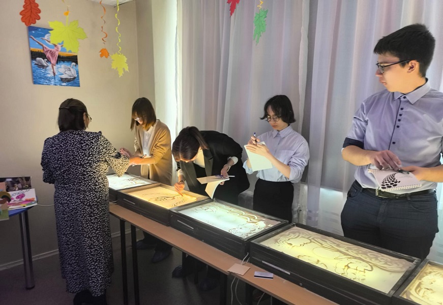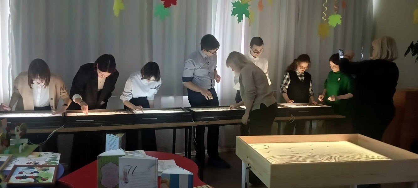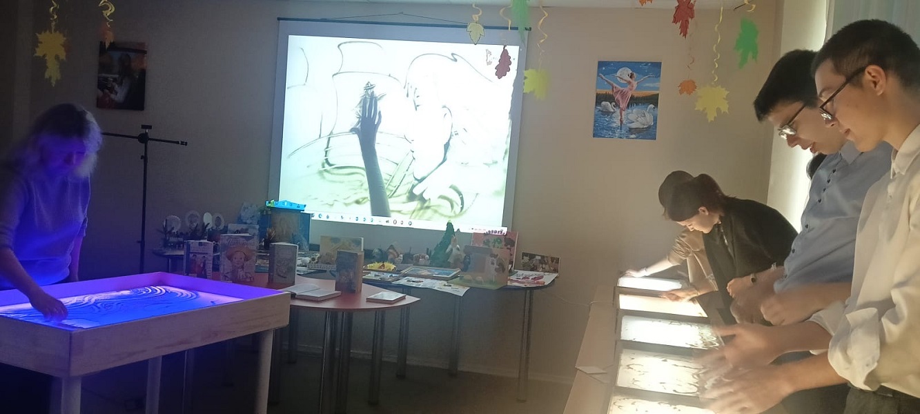 В детской библиотеке-филиале №14 состоялся мастер-класс по рисованию песком для учеников школы коррекции зрения, организованный в рамках грантового проекта.