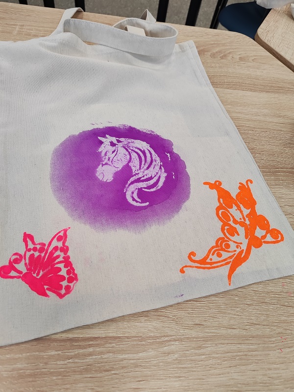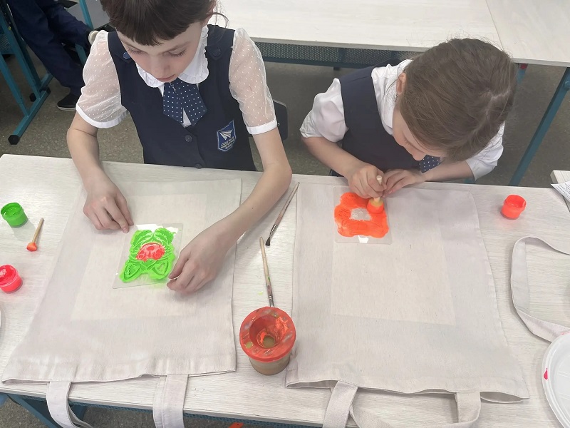3 апреля, в дни школьных каникул, в библиотеке-филиале №23, для младших классов прошел мастер-класс по росписи сумок-шоперов.