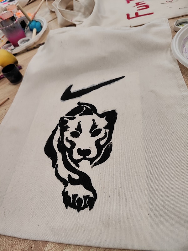 Перед каждым участником лежал чистый холщовый шопер, кисти, палитра ярких акриловых красок по ткани и множество трафаретов и образцов для вдохновения.