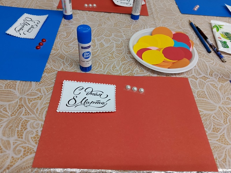 Ведущий рассказал участникам об истории возникновения этого чудесного праздника, продемонстрировал красивые открытки, изготовленные сотрудниками библиотеки. Презентация позволила раскрыть простые техники вырезания аппликаций, складывания бумаги, рисования контуров и вырезания. Общий просмотр созданных работ, похвала каждого участника, вручение сладостей стало завершающим этапом мастер-класса.