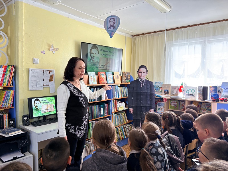 Библиотекарь вместе с детьми отправились в удивительное путешествие в мир Габдуллы Тукая, где познакомились с биографией и творчеством великого татарского поэта. Известные произведения «Водяная» и «Шурале» перенесли детей в таинственный фантастический мир сказок, которые учат быть внимательными к красоте родной природы, нести ответственность за свои поступки, уметь радоваться находчивости и смекалке. Поэтический час сопровождался песнями и стихами, такими как «Бәхетле бала», «Эш беткәч уйнарга ярый», «Бала белән Күбәләк», «Акбай» и др. В завершение мероприятия просмотрели мультфильм по мотивам стихотворения Г. Тукая «После работы можно поиграть», созданным на студии «Татармультфильм» на русском языке.
