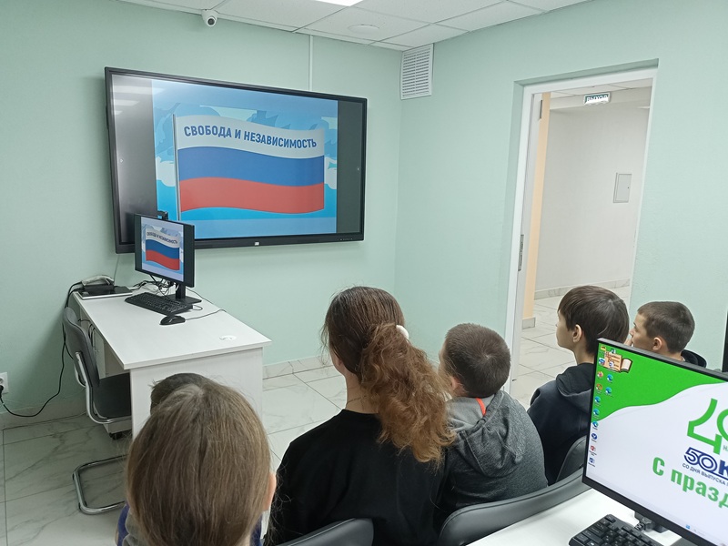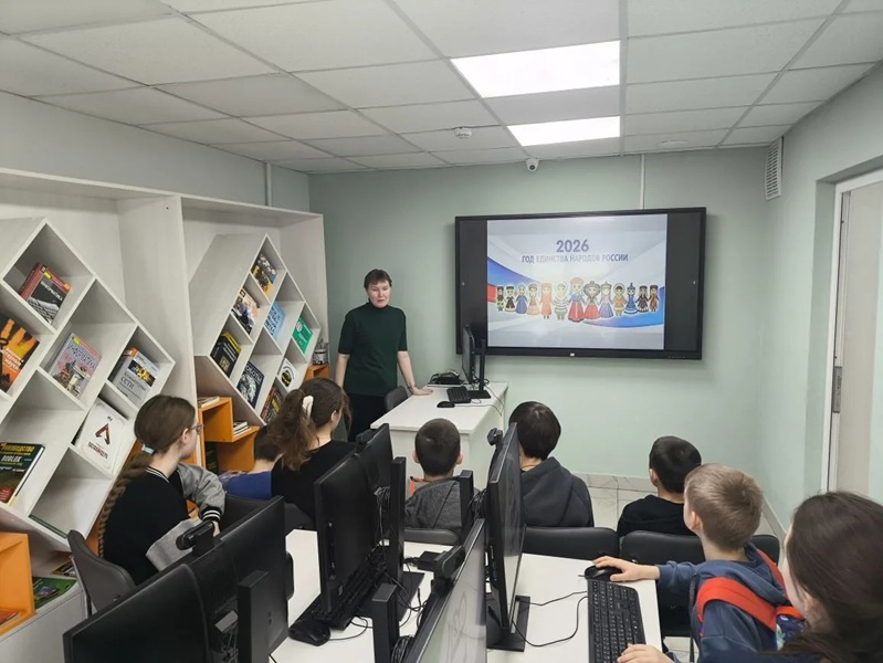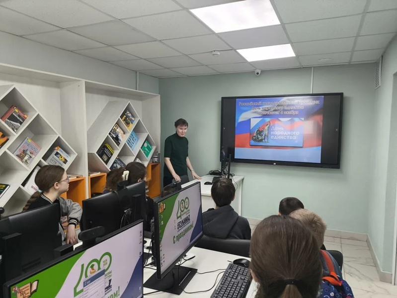 Ребята посмотрели информационный видеоролик «Год народного единства». В нём рассказывалось о нашей большой и многонациональной Родине, где у каждого народа свои уникальные традиции и обычаи, но все вместе мы — единая, дружная и сильная страна. Особенностью ролика стали красочные изображения, созданные с помощью искусственного интеллекта, которые дополнили рассказ о богатстве и многообразии России.