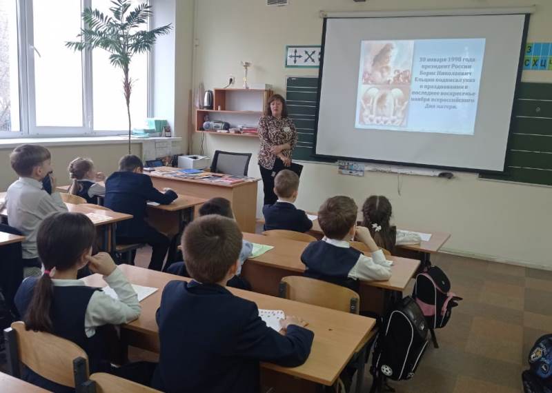 Ребята читали рассказ Бориса Емельянова «Мамины руки», рассказывали наизусть приготовленные к мероприятию стихотворения. А еще угадывали качества мамы, составляли пословицы о маме. В течение всей встречи звучала красивая музыка и песни о самом дорогом человеке в мире. В завершение девчонки и мальчишки по своим рисункам, которые они нарисовали заранее, рассказывали о своих мамах и дружно спели замечательную песню из кинофильма «Мама».