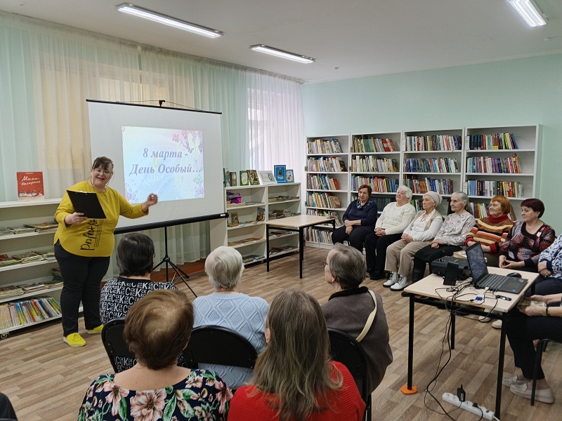 6 марта в библиотеке-филиале № 5 для участников клуба «Добрые соседи» к Международному женскому дню прошла праздничная встреча «8 марта – День особый…». Женщины – читатели пенсионного возраста услышат тёплые слова поздравления от сотрудников библиотеки, приняли участие в увлекательных конкурсах, интерактивных играх, приуроченных к празднику, увидели весёлые музыкальные видео номера, заглянули в исторический календарь и узнали, как появился женский день. Мероприятие стало прекрасным поводом отдохнуть душой, пообщаться друг с другом и насладиться незабываемым праздником весны и красоты.