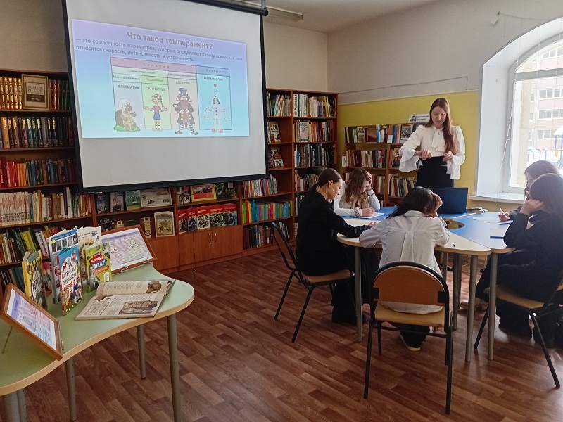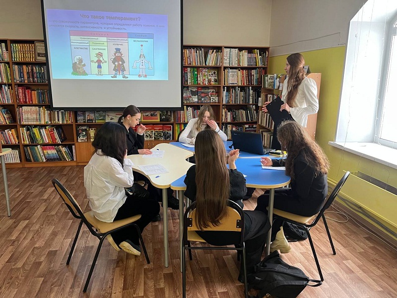 В ходе тренинга участники провели анализ своих способностей и определили свой тип темперамента. Выявленные профессиональные качества служат основой для обоснованного выбора карьерного пути. Кроме того, ребята обсудили семь шагов, которые нужно пройти для того, чтобы определиться с профессией. Мероприятие сопровождала тематическая книжная выставка.