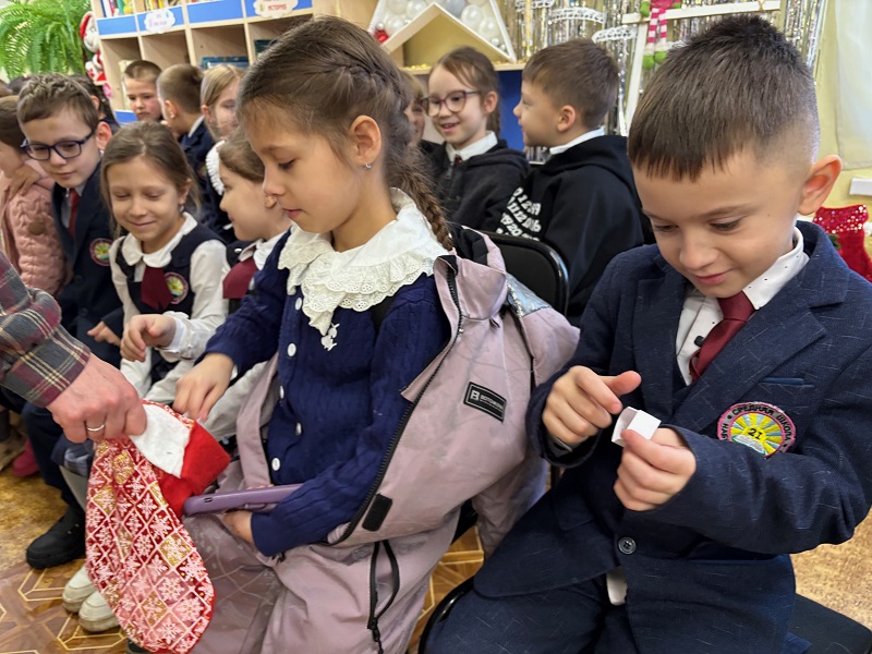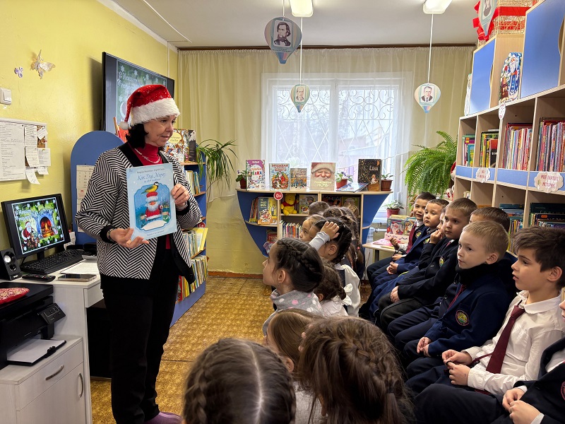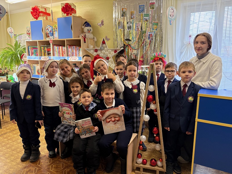 Библиотекарь поздравила ребят с наступающим праздником, рассказала о традициях встречи Нового года в разных странах мира, об истории появления новогодней ёлки, и, конечно же, о добром дарителе подарков – Дедушке Морозе. Ребята с интересом участвовали в викторине, вспоминали зимние пословицы и читали стихи.