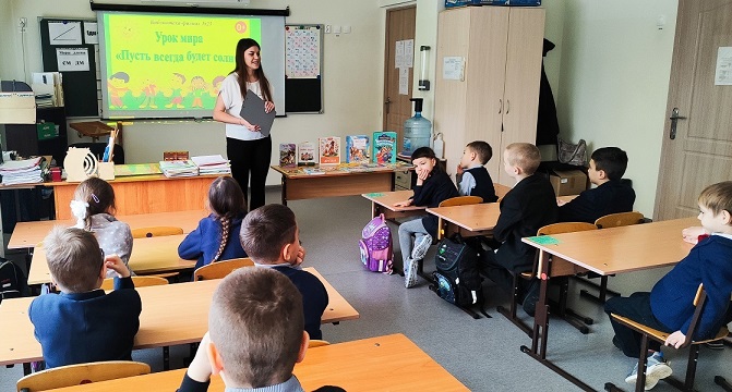 5 февраля библиотека-филиал № 23 для второклашек провела урок мира «Пусть всегда будет солнце».