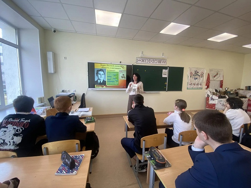 В рамках программы «Время России» библиотекарь библиотеки-филиала № 13 провела мероприятие, на котором рассказала старшеклассникам о легендарном лётчике, Герое Советского Союза Александре Маресьеве. Мероприятие приурочено к 110-летию со дня рождения героя.