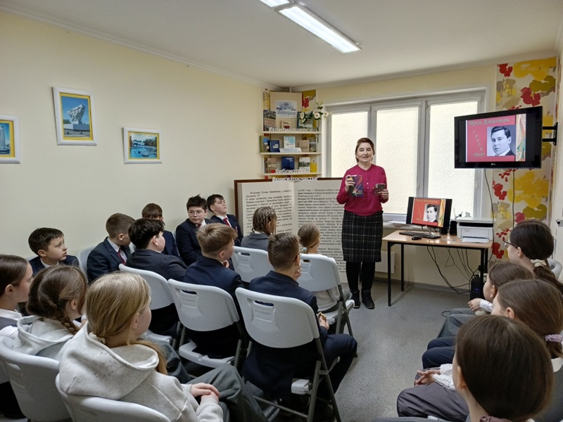 12 февраля для учащихся в библиотеке-филиале №6 состоялся вечер-портрет «Муса Джалиль – поэт-герой». На мероприятии ребята познакомились с историей жизни и творчества татарского поэта Мусы Джалиля. Они погрузились в атмосферу поэзии, прочитав произведения разных периодов его жизненного пути, услышали музыкальные композиции, созданные на основе его стихов. Для закрепления полученных знаний ребята приняли участие в увлекательной литературной викторине под названием «Наш Джалиль».