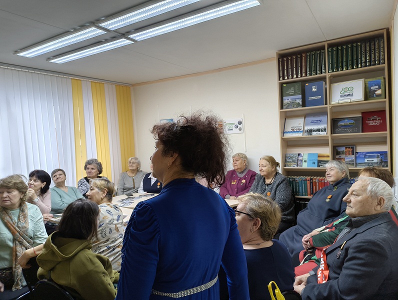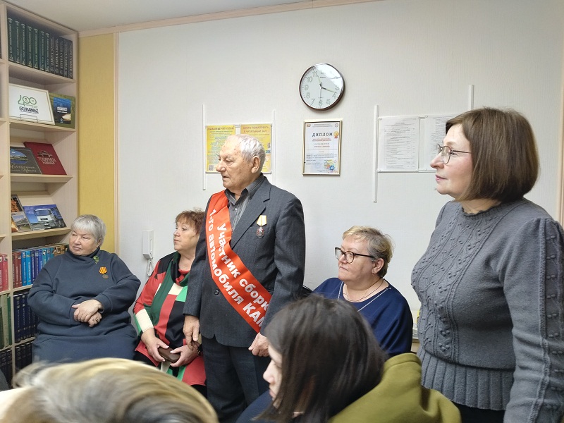 Участники программы «Познавательный вторник» — все камазовцы и проработали на КамАЗе более 30 лет, поэтому на очередную встречу пришли в праздничном настроении, ведь каждая имеет отношение к сборке автомобилей. На встречу был приглашен ударник социалистического труда, которому было доверено собирать 1 автомобиль. Кроме ленты, у него есть удостоверение за подписью директора завода и других ответственных лиц. Встреча проходила в режиме интервью. Владимир Васильевич рассказал, как собирали первый автомобиль на РИЗе, о трудовых буднях заводчан. Участники мероприятия дополняли рассказ героя своими наблюдениями и вспоминали веселые и счастливые моменты. А завершилась встреча прочтением стихотворения «Первый КАМАЗ» Л. Тимофеевой.