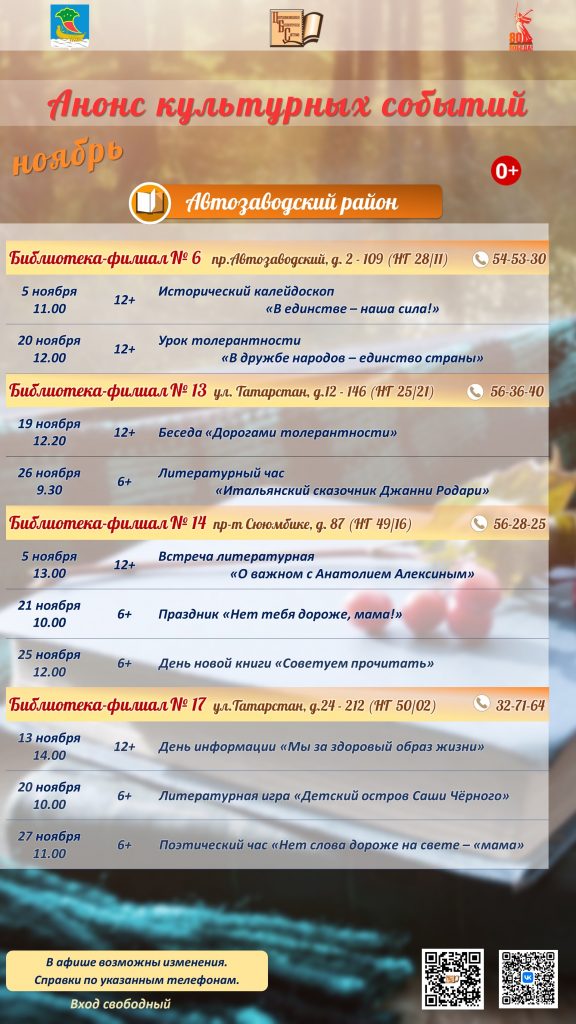 Главная » Новости » Афиша мероприятий в библиотеках на ноябрь (0+)