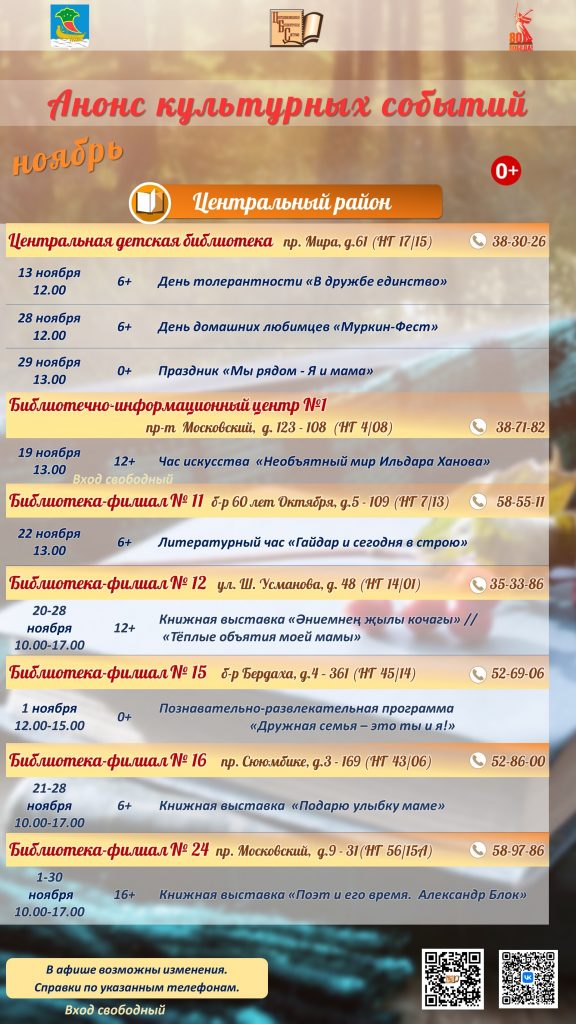Афиша мероприятий в библиотеках на ноябрь (0+)