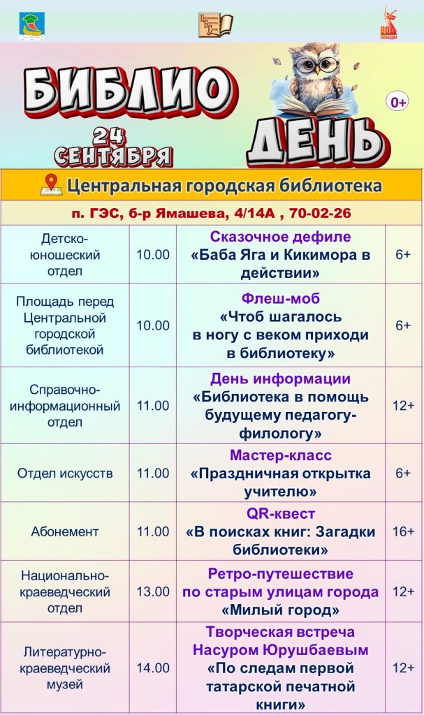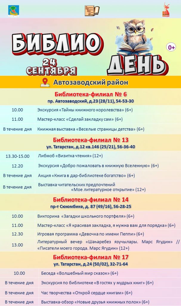Приглашаем вас 24 сентября с 10:00 до 17:00 на большой праздник — Библиодень «Давайте познакомимся!». Он пройдет одновременно во всех библиотеках Набережных Челнов.