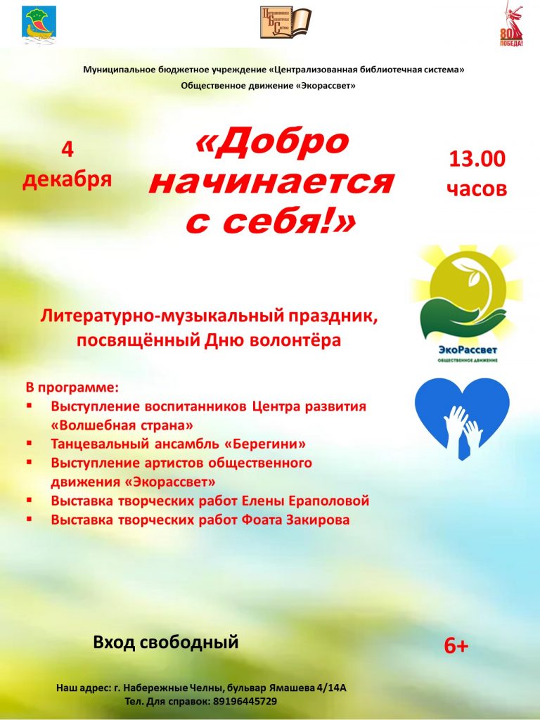 Главная » Новости » Литературно-музыкальный праздник, посвящённый Дню волонтёра “Добро начинается с себя!” (6+)