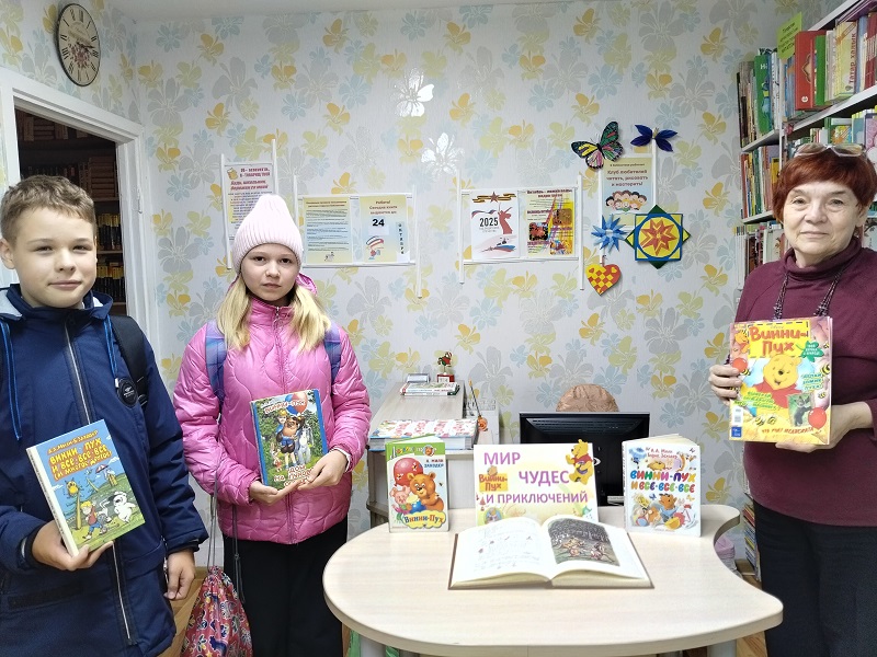 13 нче санлы китапханә хезмәткәре китапханәгә килүчеләргә әлеге аю баласының туган көненә багышланган акциядә катнашырга тәкъдим итте. Китапханәче башында пычкы чүбе белән аю баласының ничек барлыкка килүе, һәм Винни-Пух дигән гадәти булмаган исеменең каян килеп чыгуы турында сөйләде. Балалар «Винни-Пух һәм барысы да, барысы да, барысы да…» викторинасында катнашты, Винни-Пухның яраткан «Пушишки» уенын уйнады, Винниның иң яхшы дуслары турында искә төшерде, тасвирлаган буенча геройны таныды һәм танылган җырларны дәвам итте. Шулай ук төрле сынаулар балалар өчен бик кызыклы булды.