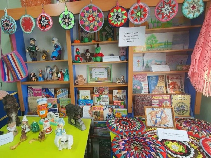 Сугыш хәрәкәте ветераны Галиева Лилия Тимергали кызы үзенең тукыма кисәкләреннән тегү белән мавыга башлау тарихы белән уртаклашты, матур эш үрнәкләрен күрсәтте.
