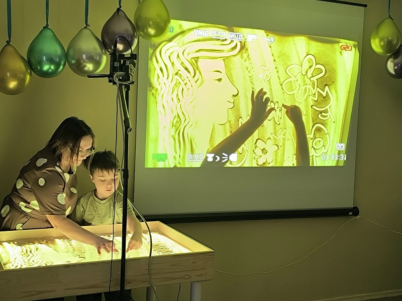 Библиотекарь также напомнил детям о приближающемся празднике — Дне Матери. Ведь мама — это тот человек, который любит своих детей такими, какие они есть. По приглашению библиотекаря дети сделали песочные зарисовки на песке, изобразив цветы для своих мам. В завершение встречи для них был проведён мастер-класс «Букет для мамы».