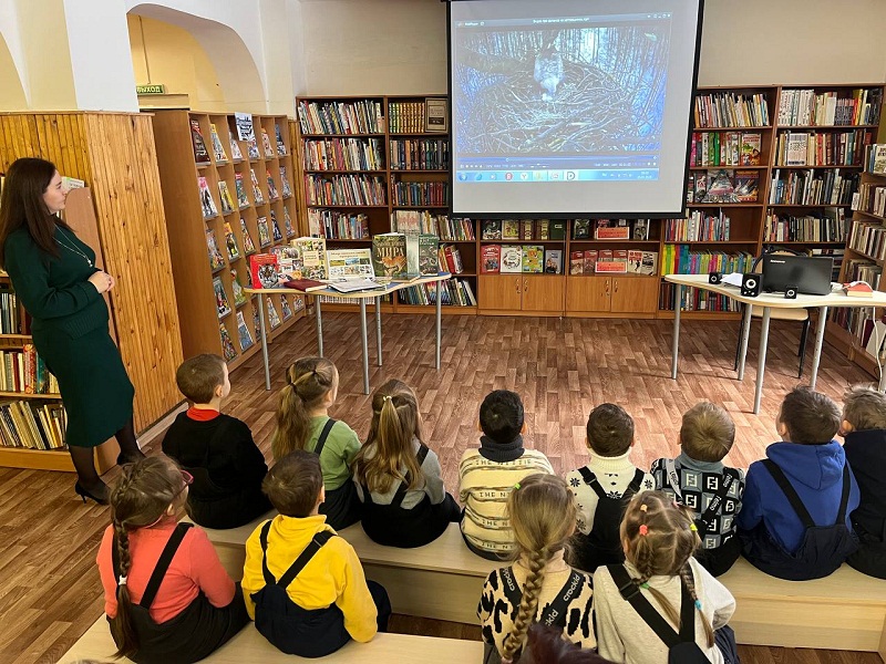 Библиотекарь объяснила ребятам значения слова заповедник.  Дети узнали о том, какие животные и растения обитают в Волжско-Камском государственном биосферном заповеднике. Все вместе полистали страницы Красной книги, затем дети сыграли в игру «В мире животных».  Дошкольники оживленно отвечали на вопросы, делились впечатлениями.