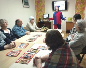 Чара кунакларын шамакай киемендәге алып баручы каршы алды. Клубта катнашучылар аның белән бергә кышны озату белән бәйле мәкальләрне һәм халык сынамышларын искә төшерде. «Май чабу тарихы» викторинасы сорауларына җавап биреп, катнашучылар ни өчен Май чабуның элек «Комоедица» дип аталуы һәм нилектән борынгы заманнарда биек боз таулардан шуулары турында белде.