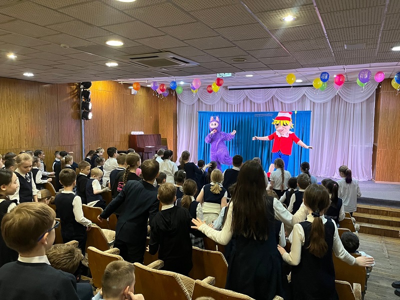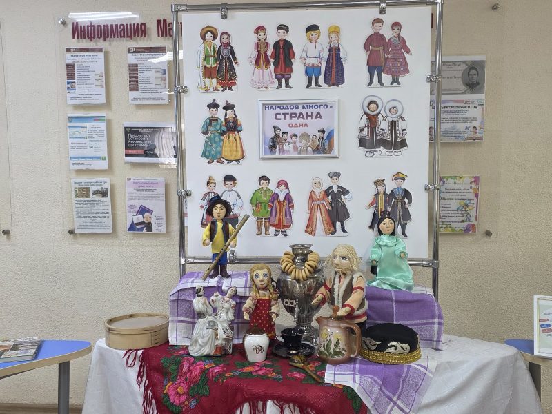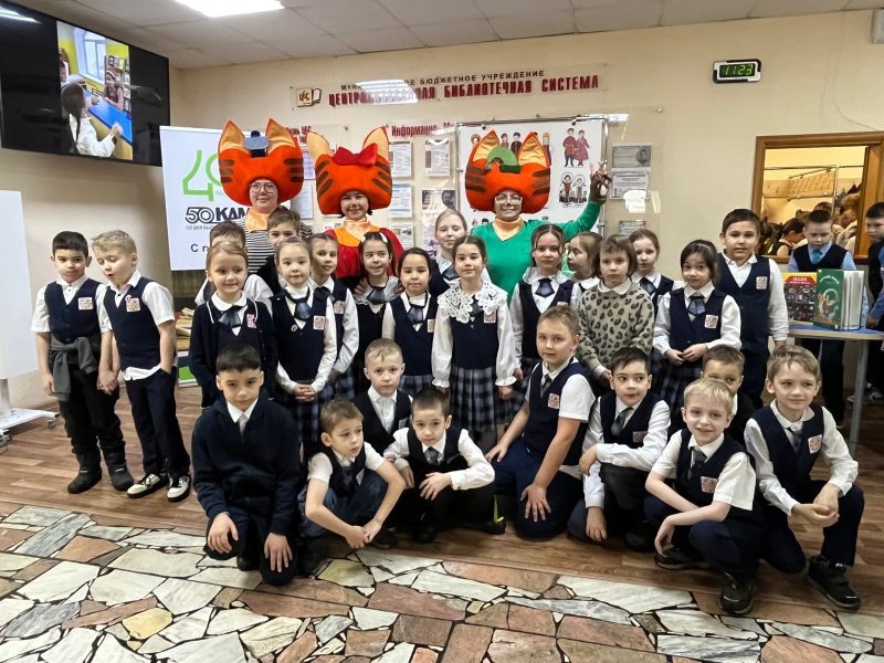 Китапханә фойесында балаларны  «Три кота» мультфильмыннан геройлар каршы алды, алар белән  «Халыклар күп – ил бер» күргәзмәсе янында истәлеккә фотога төшәргә мөмкин булды.