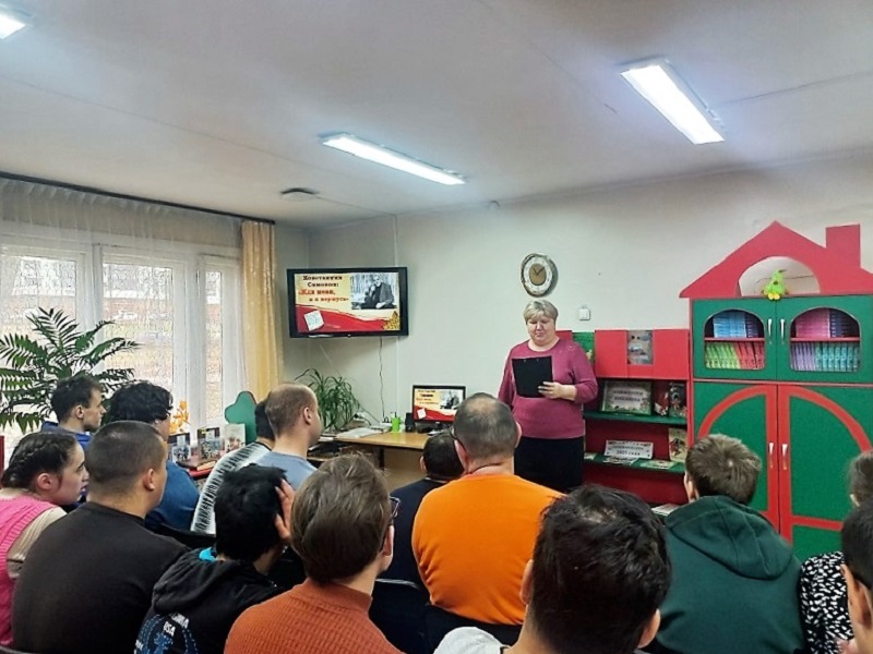 26 ноября в библиотеке-филиале №10 для подопечных отделения дневного пребывания прошло мероприятие посвященное этому замечательному человеку. Библиотекарь рассказала о творческом и жизненном пути поэта, который стал «певцом» Великой Отечественной войны.