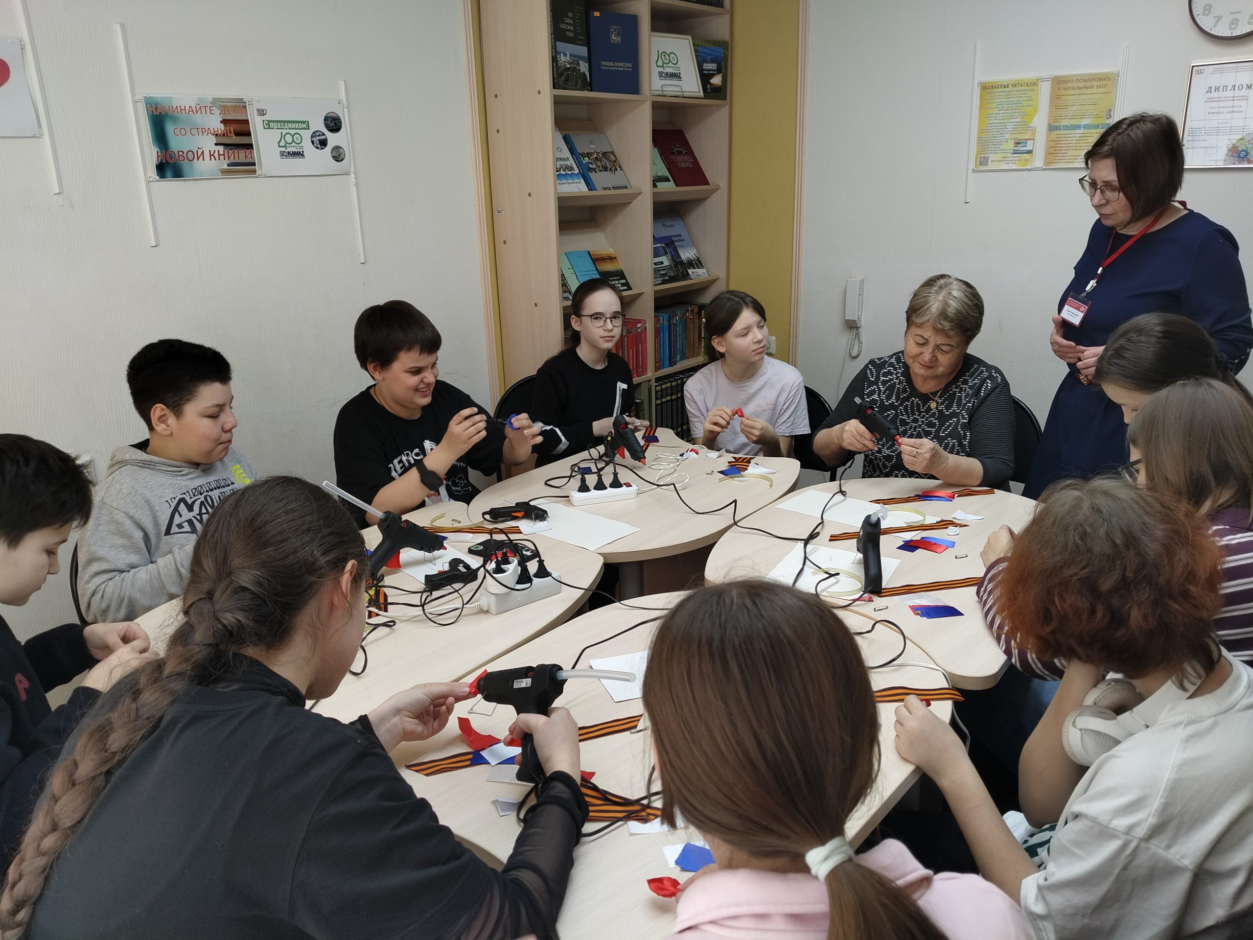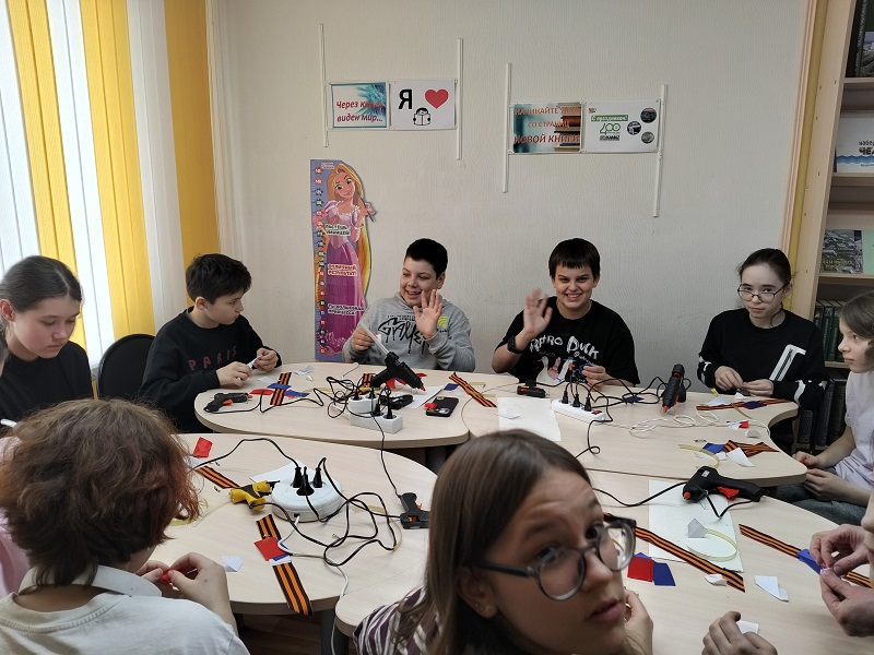 3 апреля библиотеку-филиал № 13 посетили пятиклассники и приняли участие в мастер-классе по изготовлению броши из георгиевской ленты. Черно-оранжевые ленточки носят люди в мае. Это не просто яркий аксессуар — за ним скрывается целая история смелости, подвигов и памяти.
