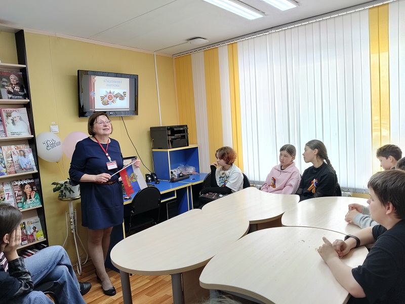 Участники мастер-класса узнали историю самой ленты, а она началась в 1769 году, и о том, что с 2005 года георгиевская ленточка стала символом акции «Я помню! Я горжусь!». Носить ее — значит говорить «Спасибо» тем, кто подарил мир. Броши из георгиевской ленты, атласных лент в цветах российского триколора получились красивые.