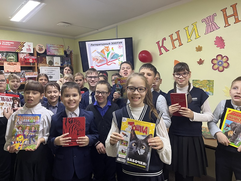 Көзге каникуллар көннәрендә 28 октябрьдә башлангыч сыйныф укучылары өчен 23 нче санлы китапханәдә «Әдәби Зоотур» дигән танып белү уены узды.