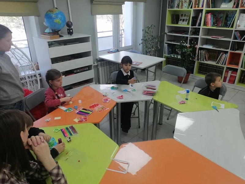 Балалар  күптөрле бакалар – матур тропиктан алып гади сазлыкка кадәр – рәсемнәрен бик теләп буяды. Аннан соң үз иҗат җимешләрен, матур наклейкалар белән бизәп, китап кыстыргычларына беркетте.