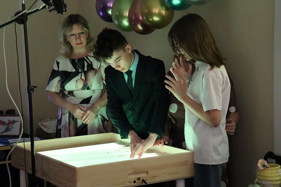 В детской библиотеке-филиале №14 города Набережные Челны реализуется творческий проект «Песочная феерия». Это уникальная студия арт-терапии, которая позволяет юным читателям в возрасте от 10 до 14 лет по-новому взглянуть на мир детской литературы. Особое внимание в рамках проекта уделяется детям с ограниченными возможностями здоровья, для которых организованы специальные занятия.