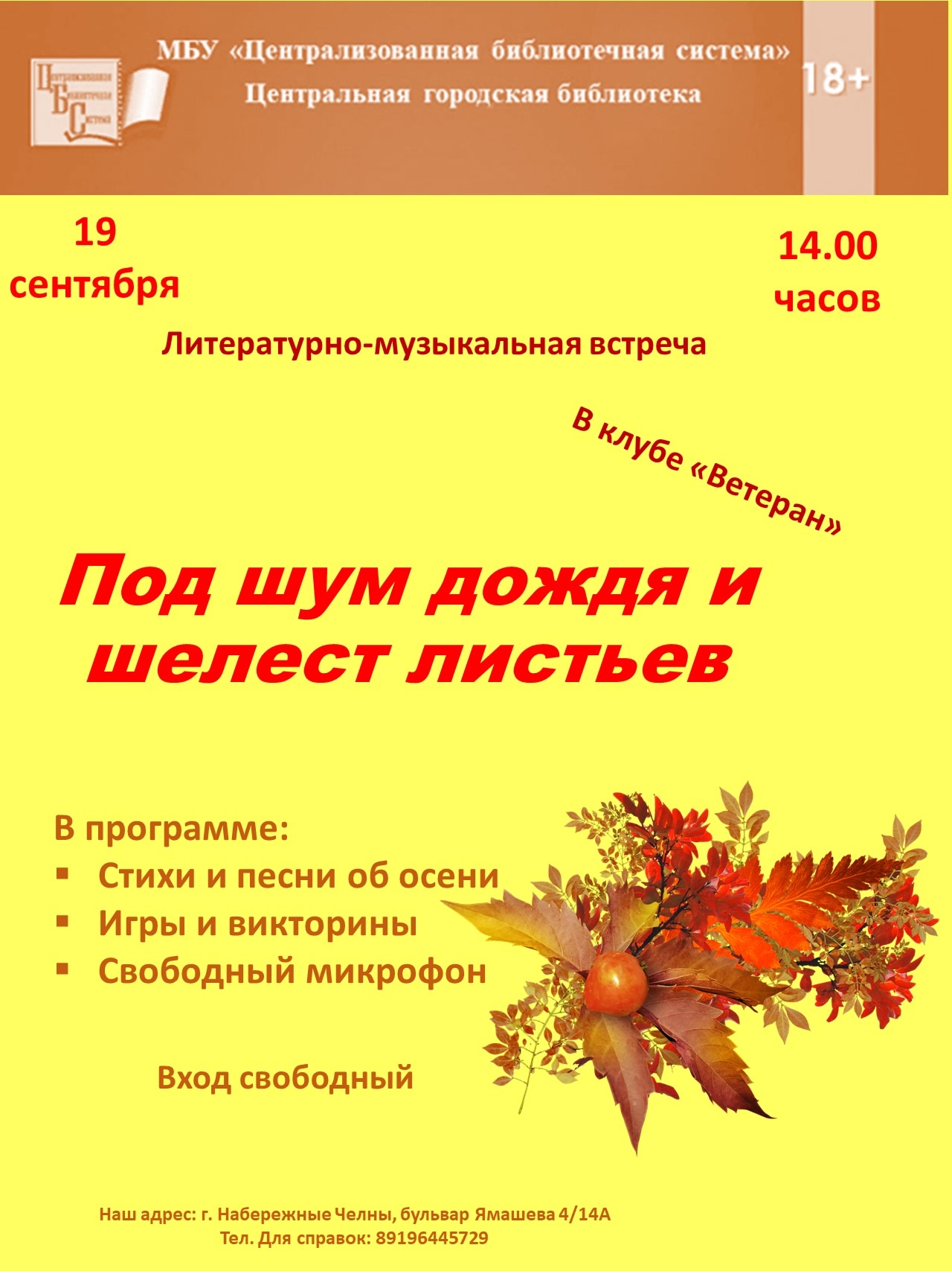 «Яңгыр һәм яфраклар кыштырдавы тавышы астында» әдәби-музыкаль очрашу (18+)