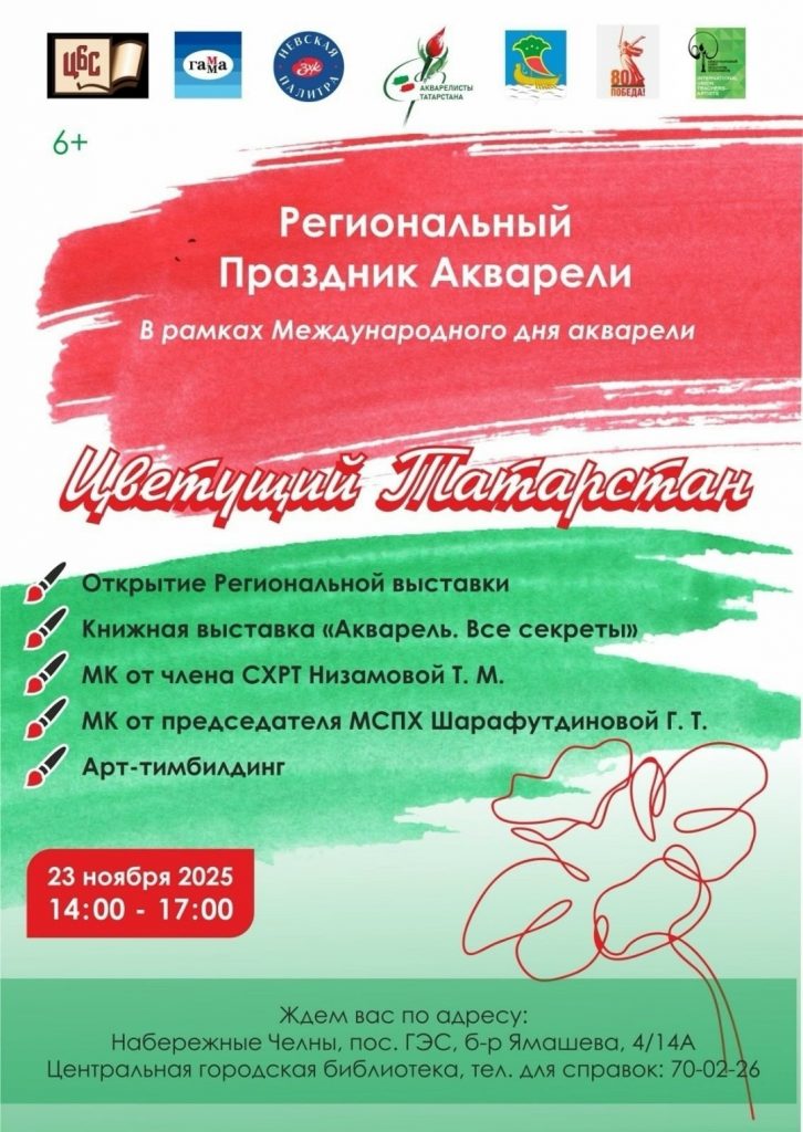Кече картиналар галереясында «Чәчәк атучы Татарстан» дигән төркемле күргәзмә ачылачак. Анда республикабызның төрле почмакларыннан 47 рәссам катнашачак. Танылган акварельчеләр Татьяна Низамова һәм Гүзәл Шәрәфетдинова профессионаллар өчен мастер-класслар үткәрәчәк. Шулай ук «Акварель. Бар серләре» дигән китап күргәзмәсе оештырылачак. Теләге булганнар акварель белән рәсемнәр ясый һәм туган як пейзажы ясау буенча «АРТ-тимбилдинг»та катнаша алачак.